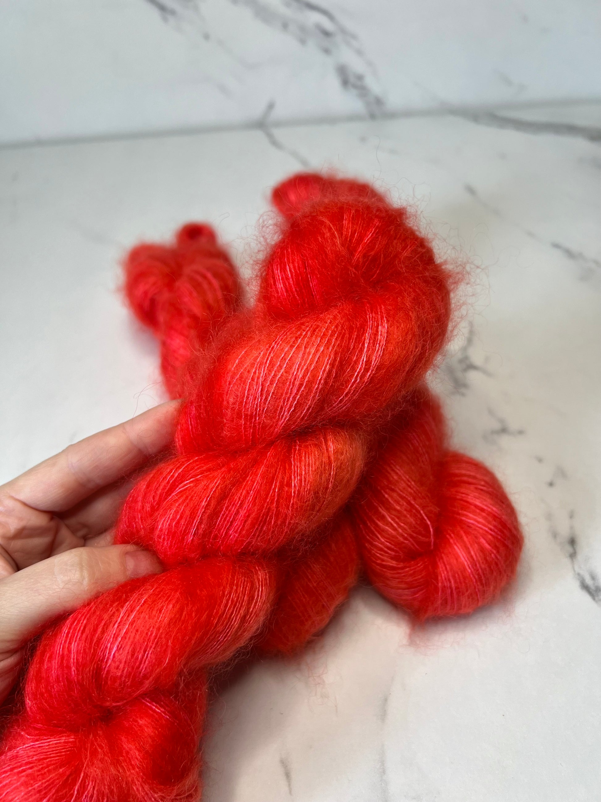 CELESTE (available for pre-order only HERE ) is a "LUXE" yarn made of 72% RMS SUPER kid mohair and 28% silk, offering exceptional softness. It's an excellent alternative to ISOLDA. It's especially recommended for sensitive skin and has been personally tested by me (atopic skin).