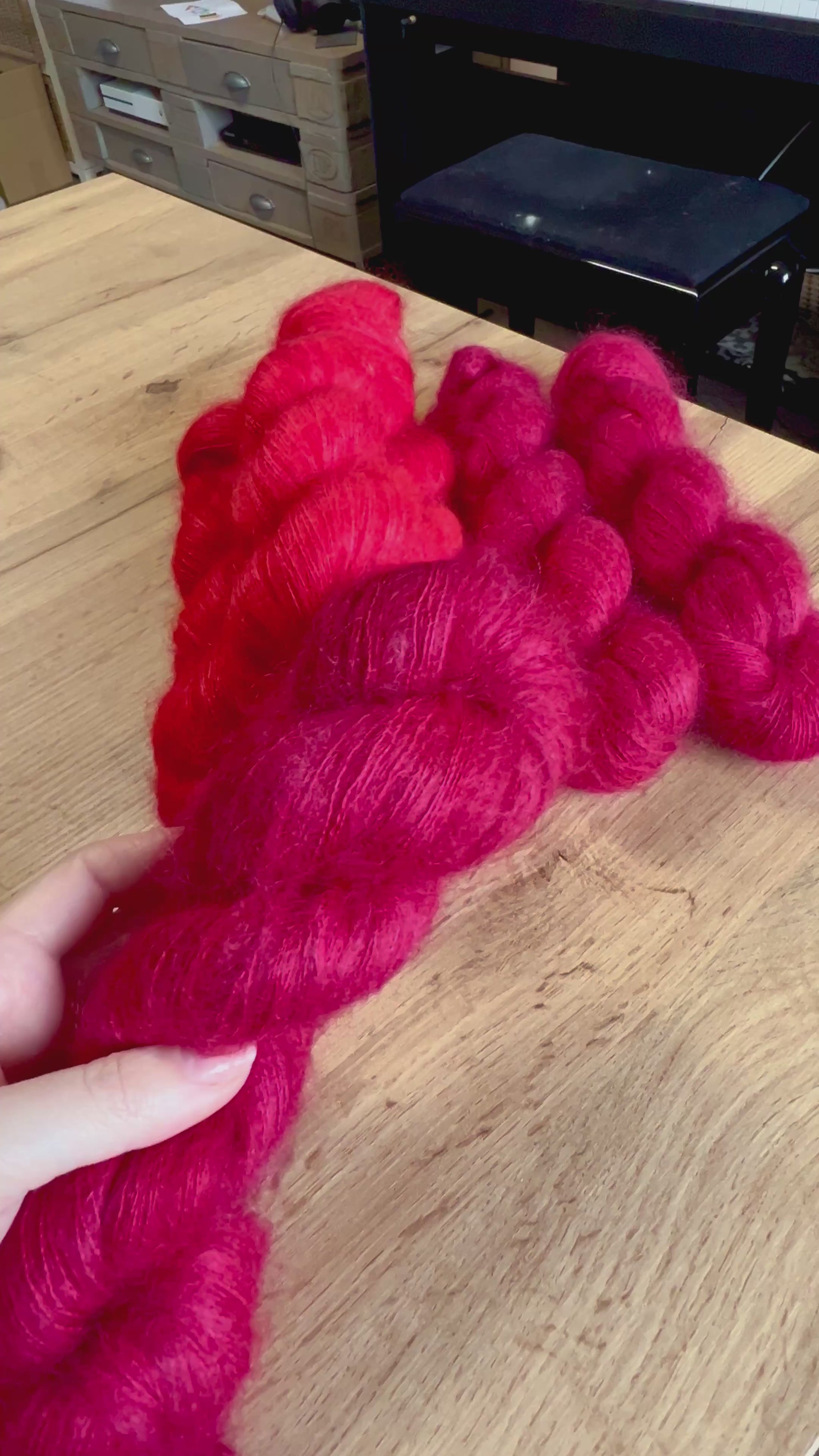 Our skeins are guaranteed to come from the same bath for the same color up to a maximum of 6 units, depending on the vat capacity and the type of wool. Beyond this quantity, your skeins may come from several baths, but they will always be dyed together during the same session to ensure the best possible uniformity.