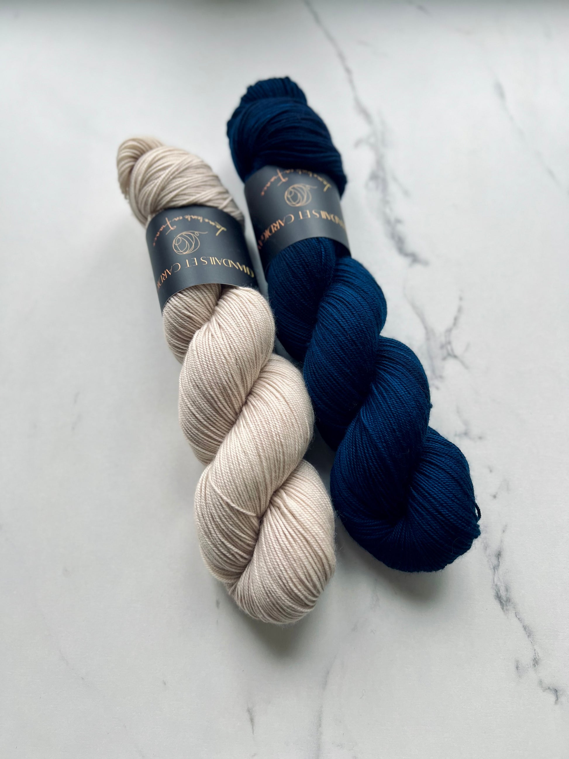 Chaque fil est teint artisanalement dans mon atelier par petits lots de 6, ce qui permet un contrôle rigoureux à chaque étape et offre des teintes intenses et semi-solides. Chaque bain est entièrement épuisé, et chaque écheveau est soigneusement contrôlé et remis en forme. Pour les projets nécessitant une grande longueur, il est recommandé d’alterner les écheveaux afin d’harmoniser les nuances. En cas de précommande, tous les écheveaux sont teints ensemble dans le même bain.