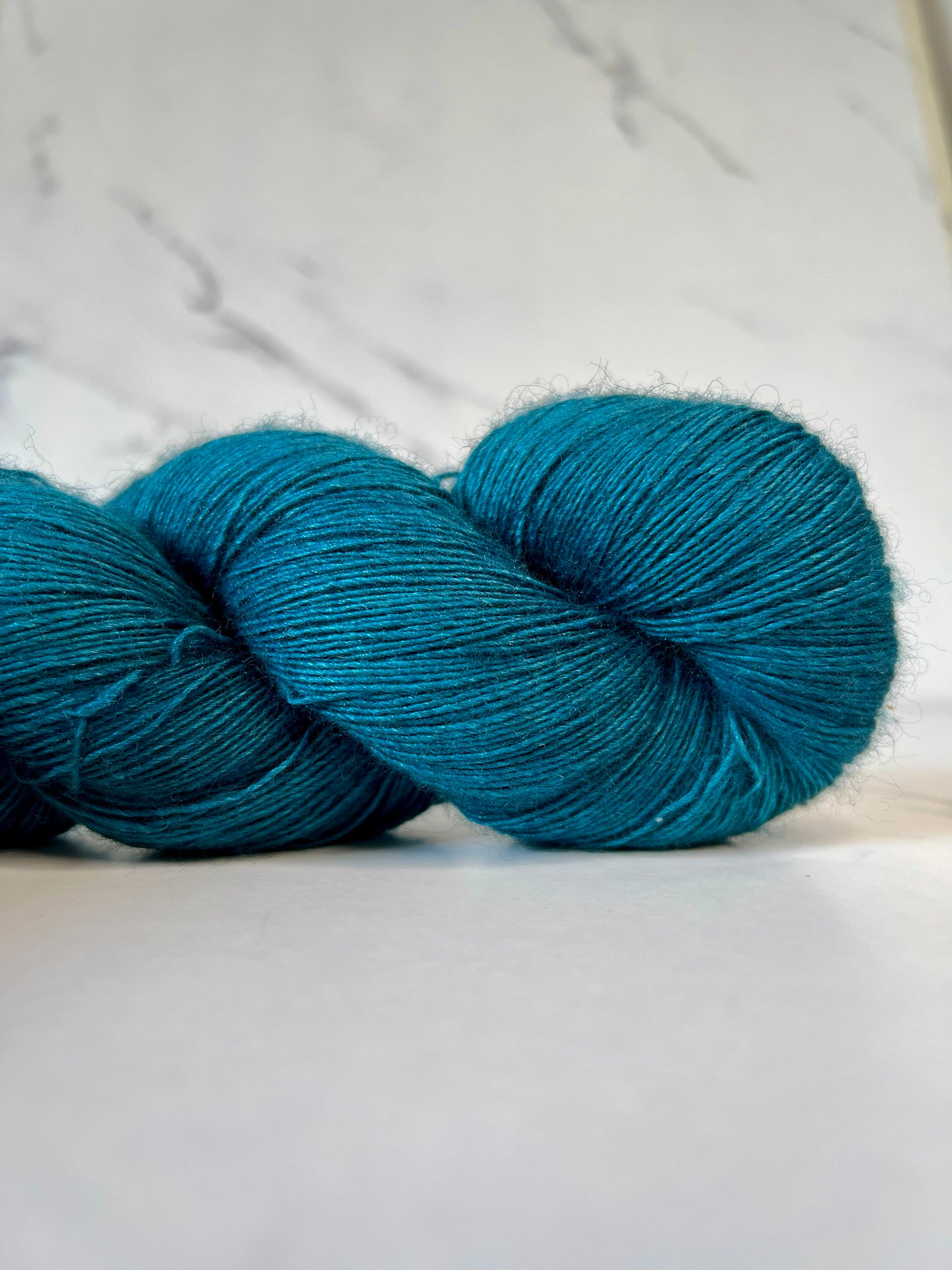 Chaque fil est teint artisanalement dans mon atelier par petits lots de 6, ce qui permet un contrôle rigoureux à chaque étape et offre des teintes intenses et semi-solides. Chaque bain est entièrement épuisé, et chaque écheveau est soigneusement contrôlé et remis en forme. Pour les projets nécessitant une grande longueur, il est recommandé d’alterner les écheveaux afin d’harmoniser les nuances. En cas de précommande, tous les écheveaux sont teints ensemble dans le même bain.